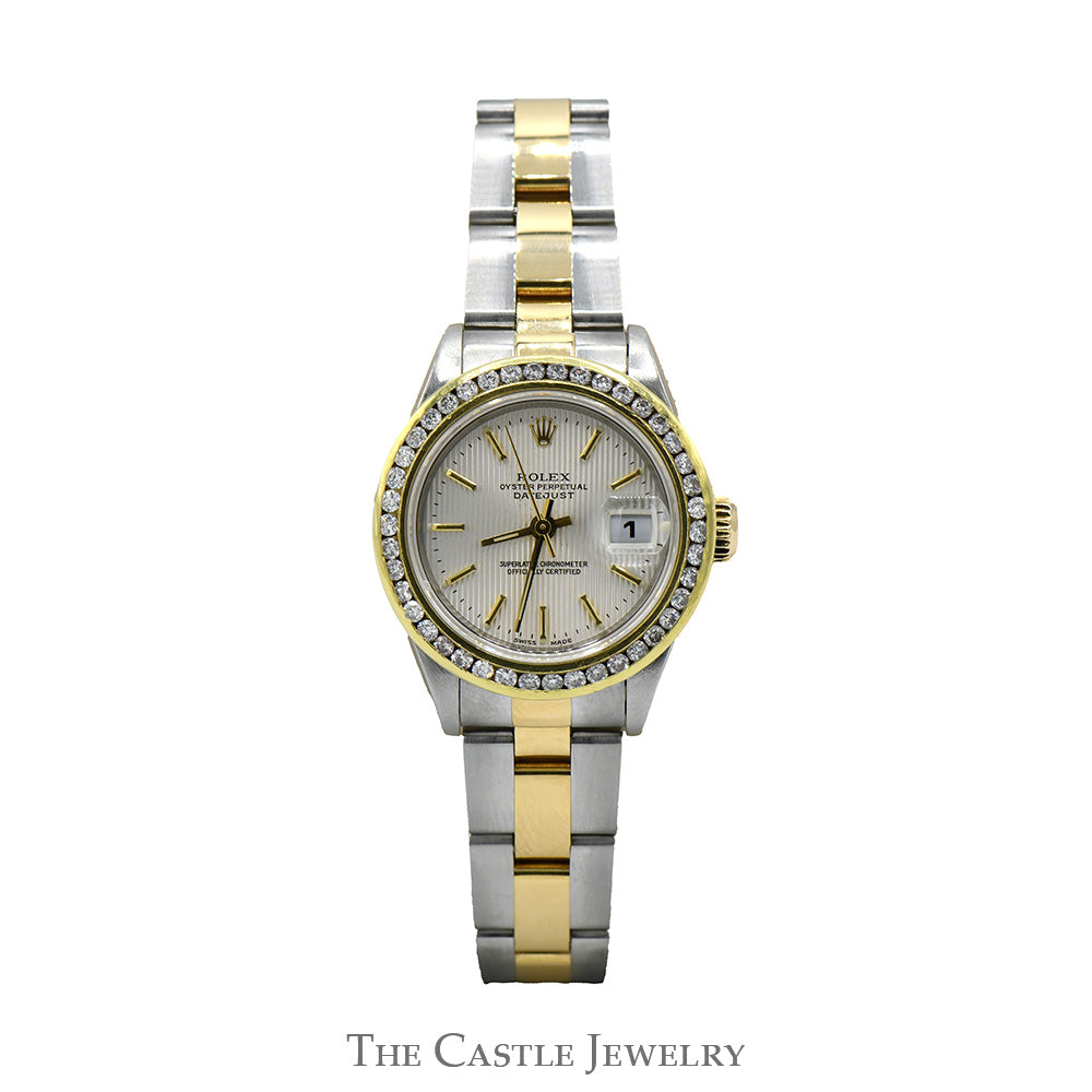 Discover the perfect union of elegance and functionality with the Ladies Rolex Datejust R79163. This exquisite timepiece features a stunning 26mm case crafted from 14k yellow gold and stainless steel, ensuring durability and luxury. Adorned with a dazzling diamond bezel, it beautifully frames a silver tapestry dial that catches the light with every glance. The iconic Oyster bracelet not only boasts a sophisticated design but also guarantees a secure fit. Whether you're dressing up for a formal event or elevating everyday wear, this Rolex is the ultimate accessory. Donβt miss the chance to own a piece of timeless artistry that signifies status and grace. Elevate your style today!