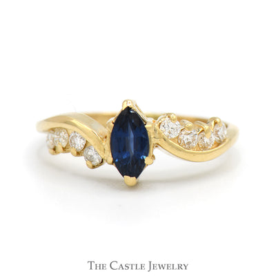 Illuminate your style with our stunning Marquise Cut Sapphire Ring, elegantly set in 14k yellow gold. This exquisite piece features a striking marquise-cut sapphire, whose deep blue hue captivates the eye and symbolizes nobility and wisdom. The ring's gracefully curved sides are adorned with sparkling diamonds, adding a touch of brilliance and sophistication that enhances the overall design. Perfect for engagements, special occasions, or simply as a luxurious treat for yourself, this ring beautifully blends classic elegance with contemporary flair. Celebrate your uniqueness and make a dazzling statement with this enchanting marquise cut sapphire ring today!
