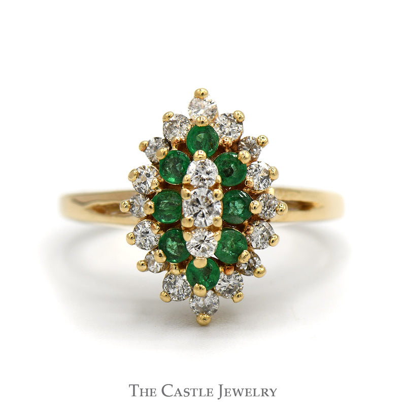 Marquise Shaped Emerald & Diamond Cluster Ring in 14k Yellow Gold