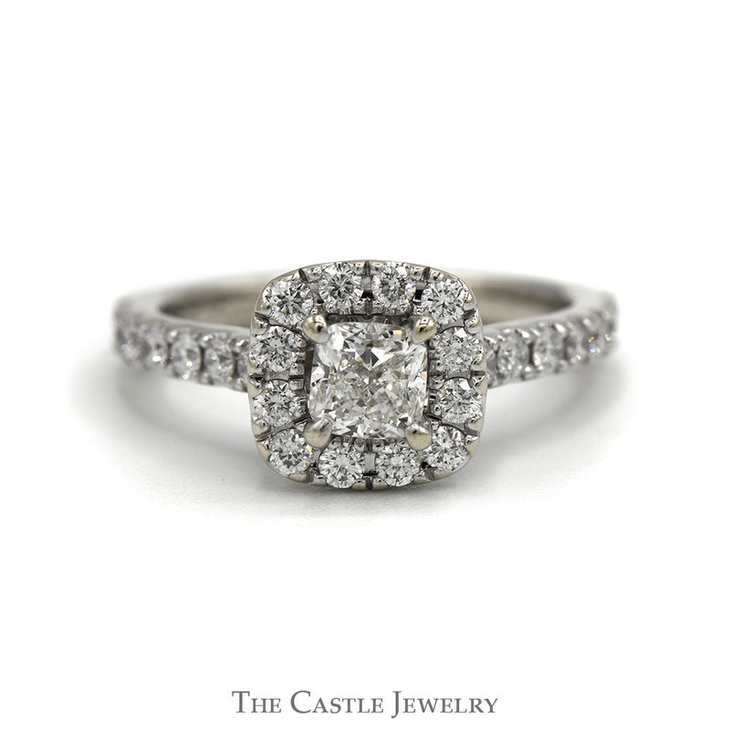 Embrace a love as timeless as your commitment with the Neil Lane 1.5cttw Cushion Cut Diamond Solitaire Engagement Ring. This stunning piece features a captivating cushion-cut diamond at its center, elegantly framed by a sparkling diamond halo that enhances its brilliance. Crafted in lustrous 14k white gold, the ring boasts exquisite accents along the sides, adding a touch of sophistication and artistry. Each facet of the diamonds reflects the unique bond you share, making this ring not just a piece of jewelry but a symbol of your everlasting love. Celebrate your unforgettable journey together with this enchanting engagement ring, destined to become a cherished heirloom. Say "yes" to forever with Neil Lane.