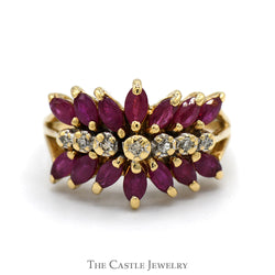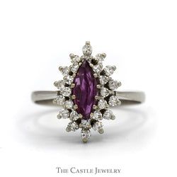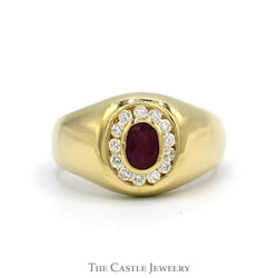 Indulge in the captivating beauty of our Oval Ruby Ring, elegantly framed by a stunning marquise and baguette cut diamond halo, all set in 14k yellow gold. The vibrant oval ruby at the center exudes a rich, passionate hue that symbolizes love and vitality, making it a perfect choice for special occasions. Surrounding this striking gemstone, the dazzling halo of marquise and baguette diamonds enhances the ring's brilliance while creating an exquisite contrast with the warm yellow gold. This enchanting piece combines classic elegance with modern design, making it an unforgettable addition to any jewelry collection. Celebrate your unique style—make this breathtaking ring yours today!