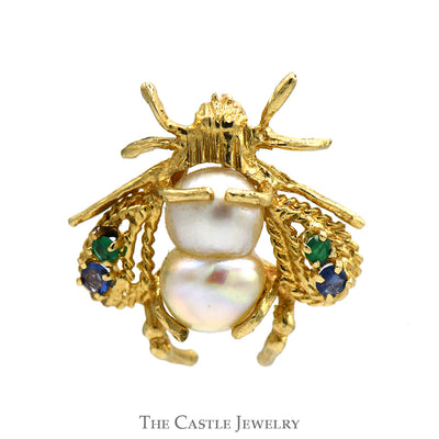 Discover the enchanting Round Pearl Bee Pin, a stunning piece crafted in luxurious 14k yellow gold. This exquisite pin features a lustrous round pearl at its center, surrounded by vibrant emerald and tanzanite accents that create a beautiful contrast and enhance the intricate bee design. The meticulous craftsmanship highlights every detail, making this pin a true statement piece. Perfect for adding a touch of elegance and charm to any outfit, this bee pin symbolizes diligence and creativity, making it ideal for both everyday wear and special occasions. Whether adorned on a jacket, scarf, or hat, it elevates your ensemble with its unique style. Celebrate your individuality and love for nature—embrace the allure of the Round Pearl Bee Pin and make it a treasured addition to your jewelry collection today!