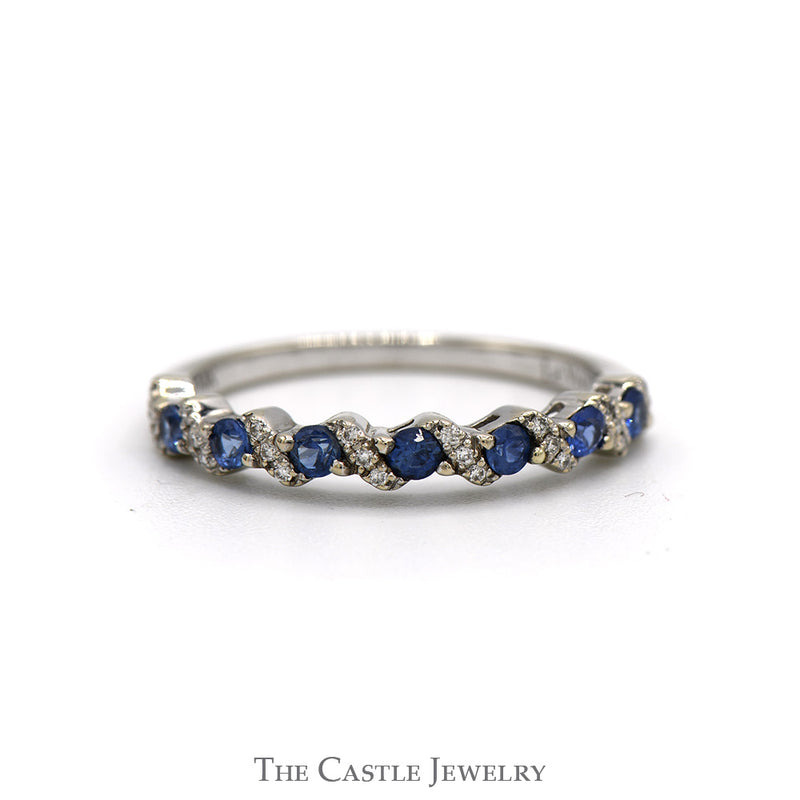 Elevate your elegance with the stunning Alternating Sapphire & Diamond Le Vian Designer Band, expertly crafted in luxurious 14k white gold. This exquisite piece features a captivating dance of rich blue sapphires and brilliant diamonds that harmoniously intertwine, creating a visual symphony that sparkles from every angle. The modern design, combined with the timeless allure of Le Vian craftsmanship, makes this band a perfect choice for special occasions or as a statement piece in your everyday jewelry collection. Adorn your fingers with this masterpiece, reflecting your unique style and sophistication. This is not just jewelry; it's your new favorite story waiting to be told.