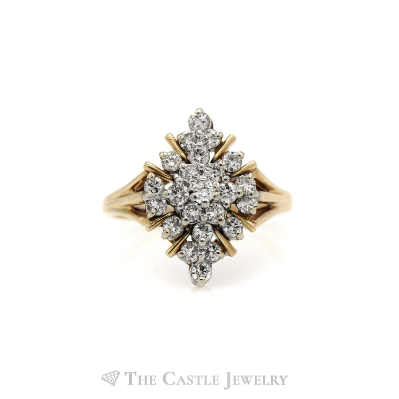 1cttw Round Shaped Diamond Cluster Ring in 14k Yellow Gold Bypass Setting