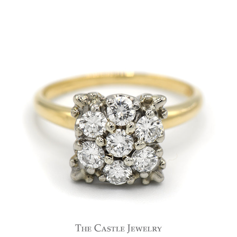Square Shaped 7 Round Diamond Cluster Ring in 14k Yellow Gold