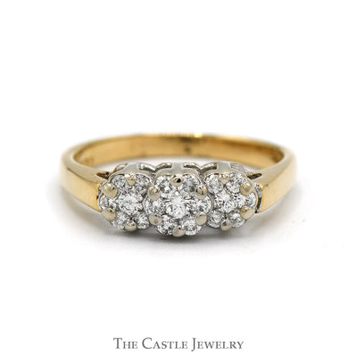 Embrace elegance with our Stunning Triple Round Flower Diamond Cluster Ring, exquisitely crafted in 14K yellow gold. This enchanting piece showcases three radiant clusters of brilliant round diamonds, artfully arranged to form a blooming flower design that symbolizes beauty and growth. Each diamond is carefully set to maximize sparkle, creating a captivating focal point that draws the eye and elevates any outfit. Ideal for celebrations or as a meaningful gift, this ring embodies timeless sophistication and is perfect for the modern woman who loves to shine. Make it yours today and wear a piece of art on your hand!