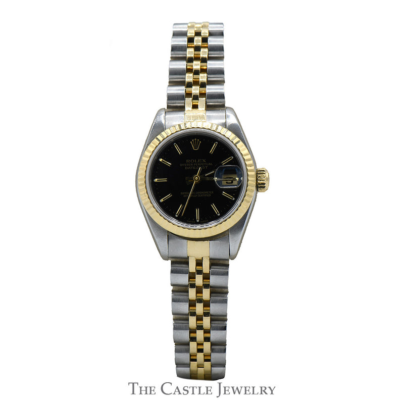 Two Tone Ladies Rolex Datejust 79173 26mm Luxury Watch with Black Dial in 18k & Stainless Steel